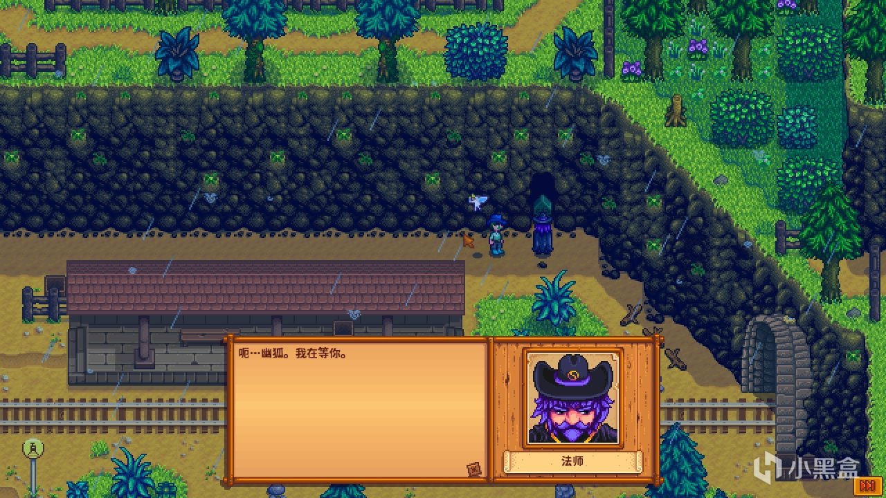 ①完成社區收集任務後,前往鐵路場景觸發法師的任務“暗黑護身符”