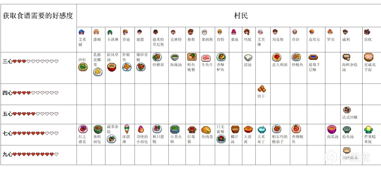 ①可結婚的村民在好感度八心後,贈送花束可以確定關係將好感提升到十心上限。