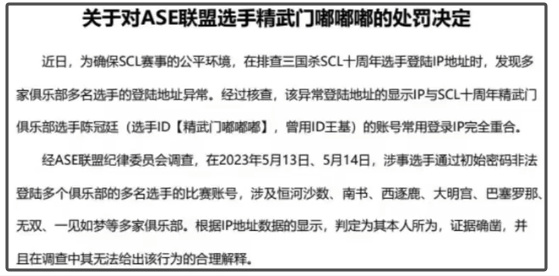 就在前几天,三国杀赛事官方公布了一条处罚公告,一口气解散了3支战队。