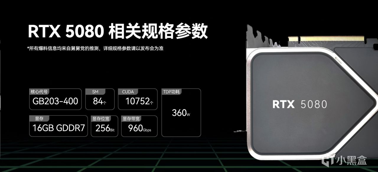 次旗艦RTX 5080的核心代號爲GB203-400,共計將擁有84個SM計算單元,而CUDA數量將會來到10752個,並配備了16GB GDDR7顯存,顯存位寬爲256Bit,顯存帶寬960GB/s,整卡TGP功耗360W。