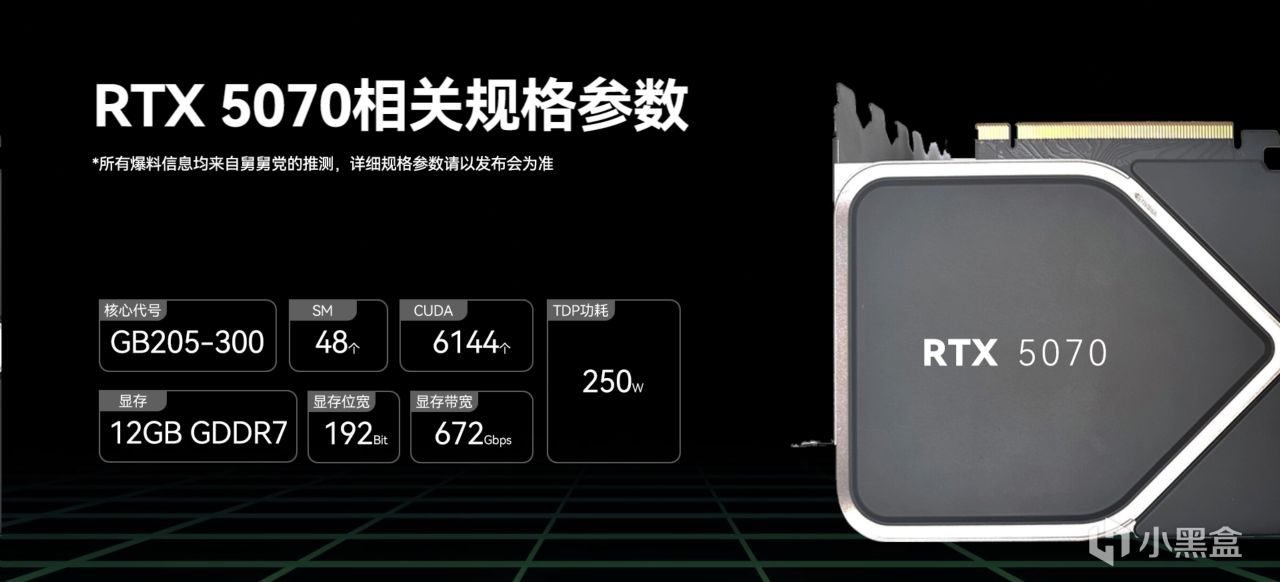 另一款主流級RTX 5070的核心代號爲GB205-300,共計將擁有48個SM計算單元,而CUDA數量爲6144個,並配備了12GB GDDR7顯存,顯存位寬爲192Bit,顯存帶寬672GB/s,整卡TGP功耗250W。