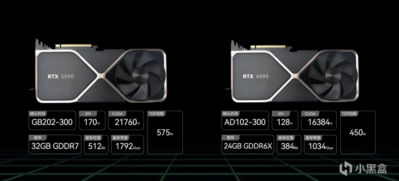 其中頂級旗艦RTX 5090的核心代號爲GB202-300,共計將擁有170個SM計算單元,而CUDA數量將會高達21760個,並配備了32GB GDDR7顯存,顯存位寬爲512Bit,顯存帶寬1792Gbps,整卡TGP功耗575W。