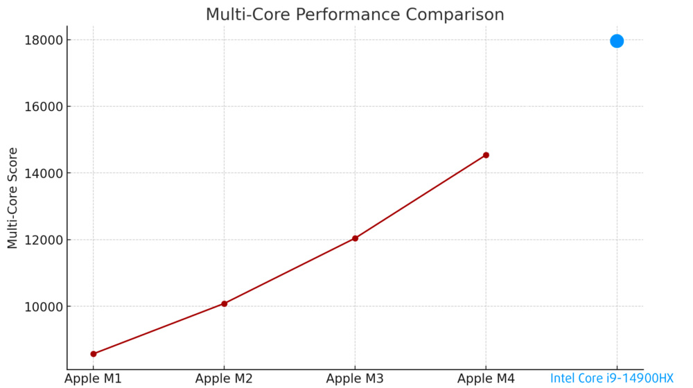 好在蘋果這麼多年並沒有在擺爛,先是在 2020 年推出了 M 系列芯片,每代更新都能把牙膏擠爆,性能大幅提升不說。
