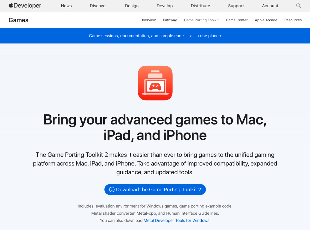 不僅如此,在 WWDC 2023 上,蘋果還正式發佈了遊戲移植工具包—— Game Porting Toolkit ,方便開發者將 Windows 上游戲快速移植到 Mac 、 iPhone 和 iPad 上。