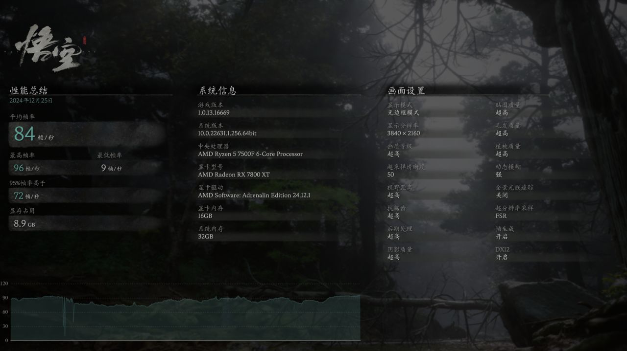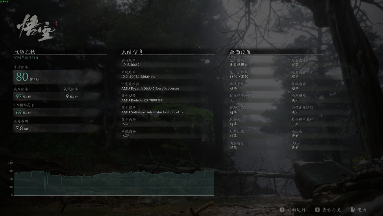 而7500F平均幀552,最低幀188,幀數翻了近一倍!!