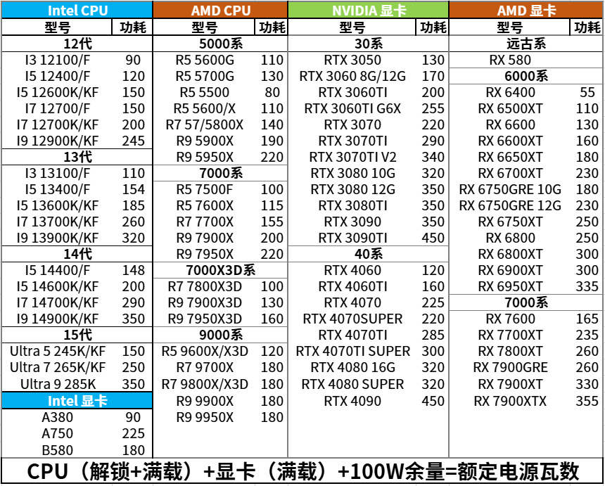 2、確定電源能帶動新CPU和顯卡,關於電源的選擇和查看,參考該圖: