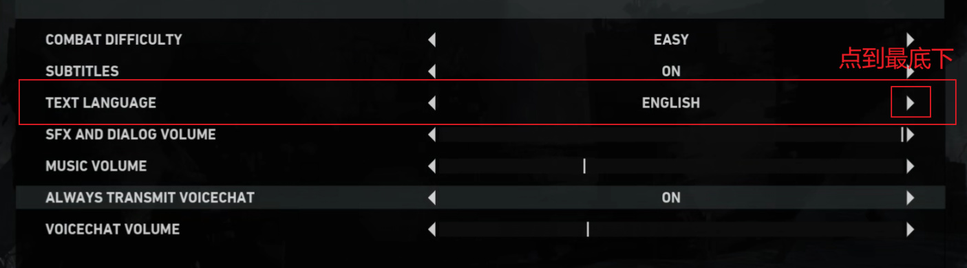 “Option-Gameplay-Text language”(最后一个是Chinese),游戏只有中文字幕没有中文语音。