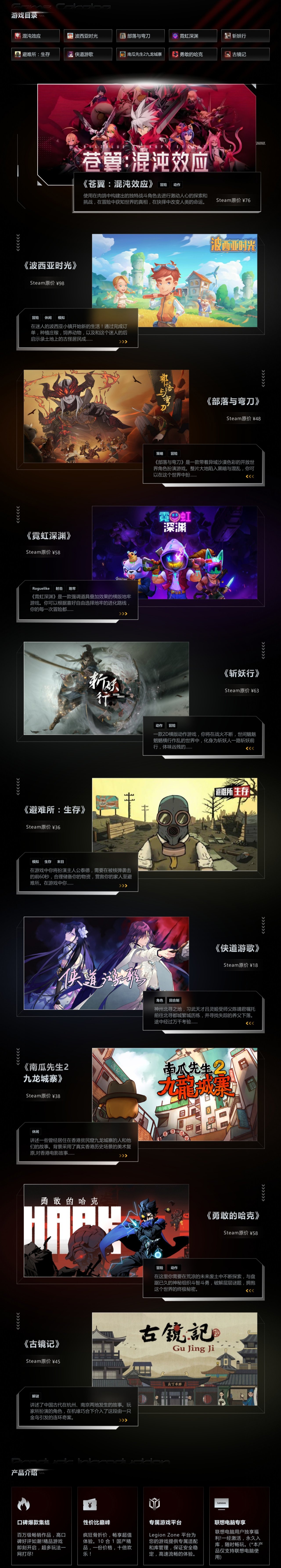 遊戲內容:LegionPlay 臻享玩包含10款備受好評的國產獨立單機遊戲,涵蓋了多種類型和風格,既有動作冒險的緊張刺激,也有休閒益智的輕鬆愉悅