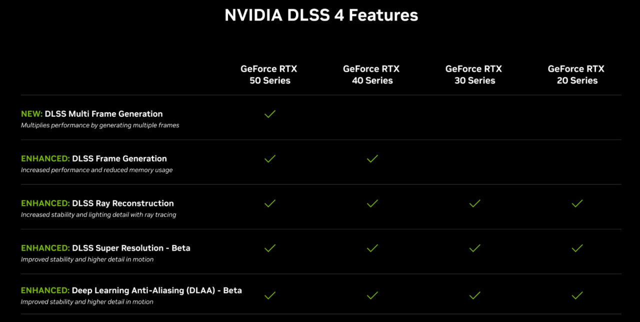 RTX 50 系列顯卡將獨佔 DLSS 4 多幀生成功能。