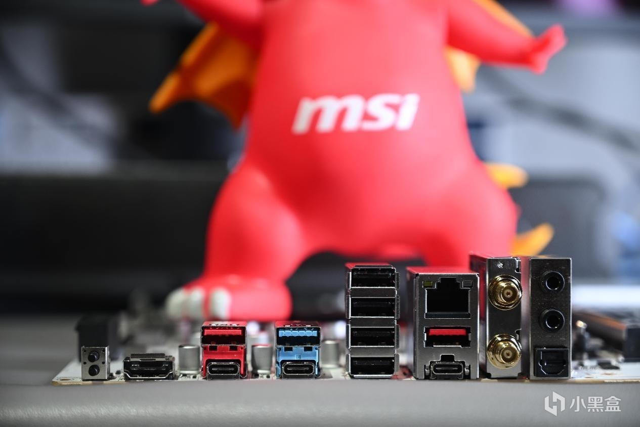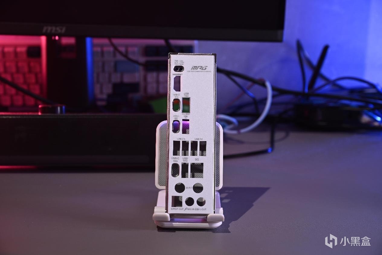 主板的IO接口从左到右分别是快刷BIOS/快清BIOS、HDMI视频输出、USB-C 10Gx3、支持快刷BIOS的USB-A 10GX2接口、USB-A 5G接口、USB-A 2.0x、Lan 5G有线网口、WIFI-7天线接口、上行输出接口、音频输入输出接口。