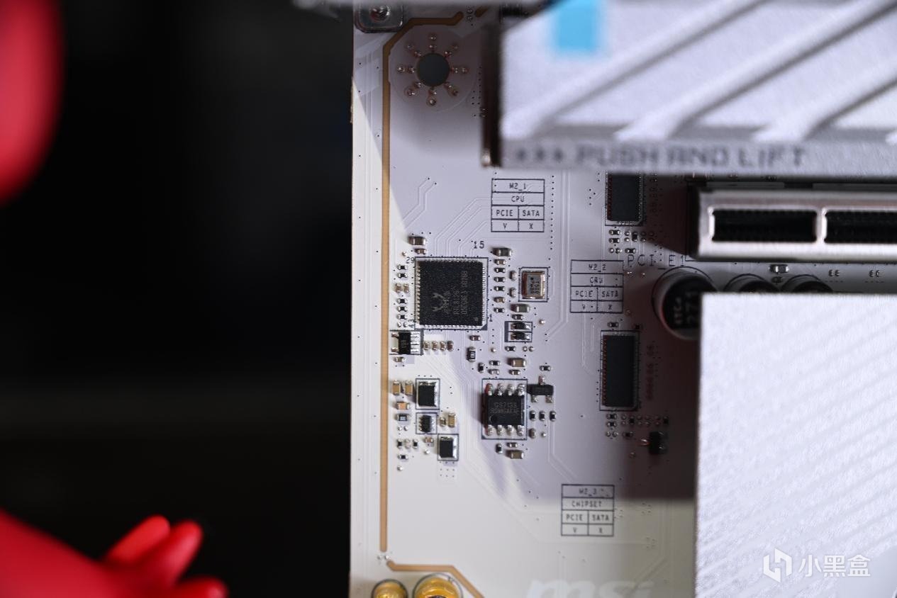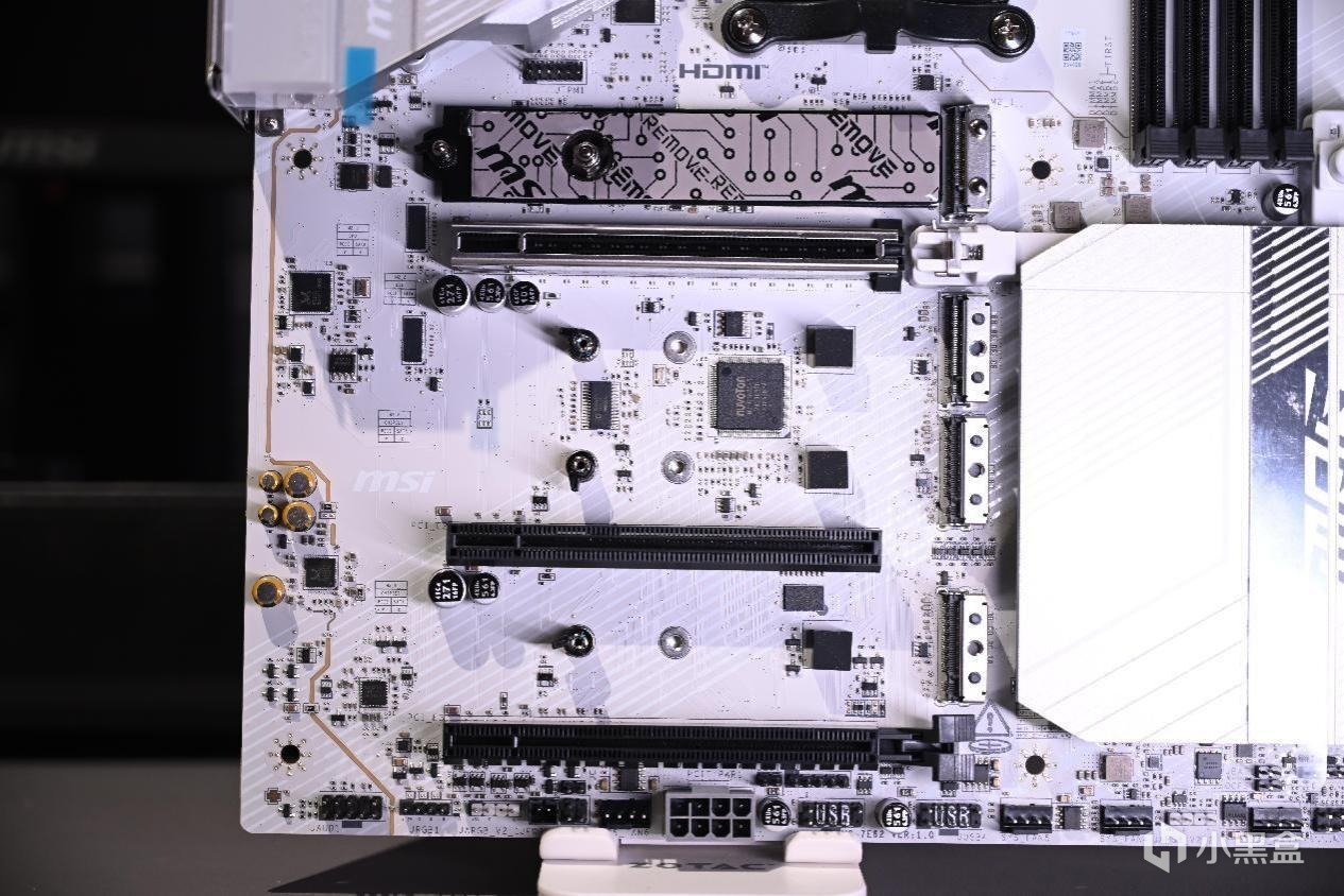 主板m.2散热装甲为一键拆卸式,下面m.2_2到m.2_4散热装甲采用螺丝固定,和Z890刀锋钛的全可拆卸式有所区别,毕竟B850便宜了那么多。