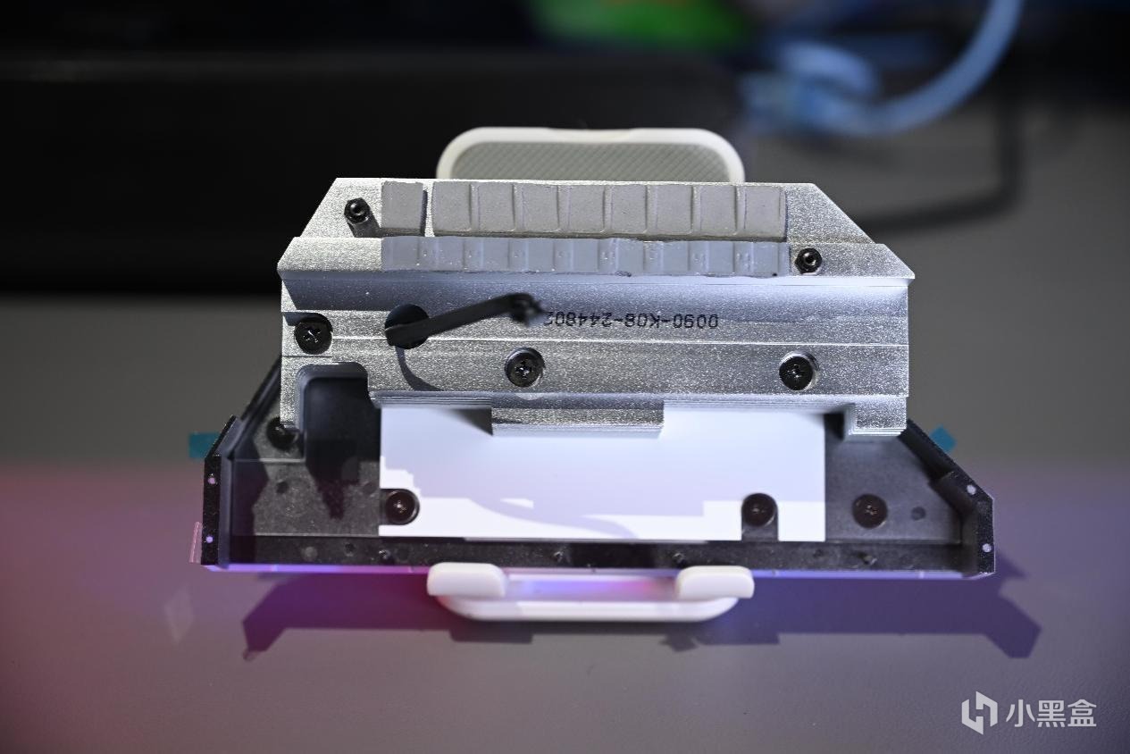 散热模块主装甲带拆解:双重散热垫,负责给电感和MOSFET进行导热,装甲带中引出4pin线提供装甲的RGB灯效。