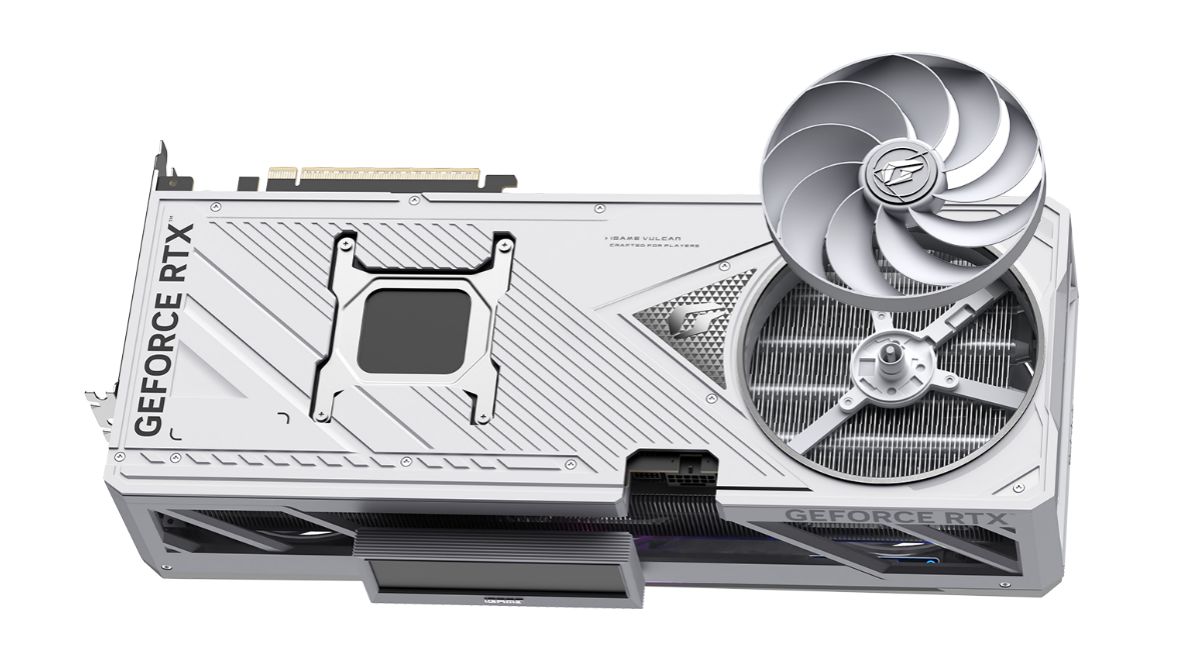 iGame RTX 50 Vulcan聖潔白擁有與黑色標準版相同的核心功能,包括iGame LCD智屏以及賽博RGB燈光組件等玩法。而在散熱方面,它與標準版的不同之處在於它配備了更爲強悍的散熱配置——「超·旋渦」散熱裝置,除了散熱器正面三架正逆轉的“風鐮”軸流風機外,聖潔白在背板的通風口處新增一架專門出風的反向風鐮軸流風扇,3+1風機的超級配置將能夠進一步提升散熱效率。強大的散熱配置將攜手玩家征戰複雜的遊戲應用場景,提供更優秀的遊戲及多高負載場景體驗!