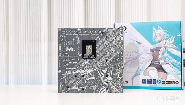 主板背面採用了灰色的塗裝搭配白色的字體和吹雪姬的剪影裝飾。