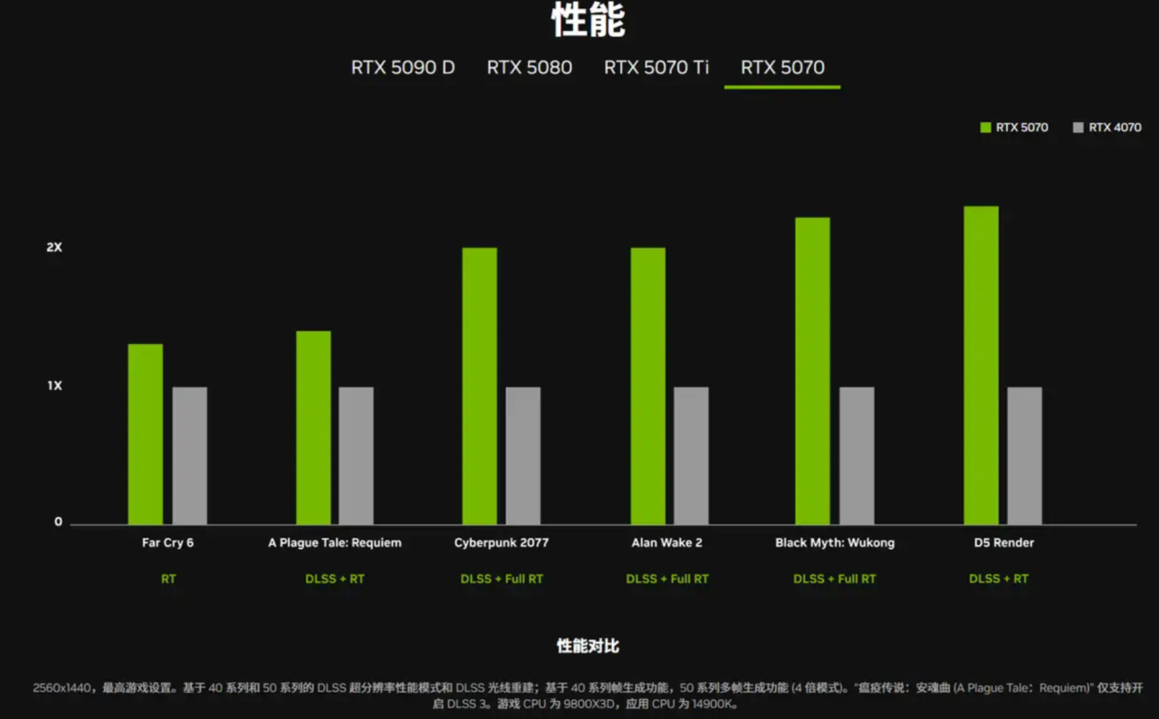 RTX 5070打RTX 4090,只是在DLSS 4+光追+各種條件+12G顯存夠用的前提下(12GB顯存 4K全高畫質一些3A可能不夠用)