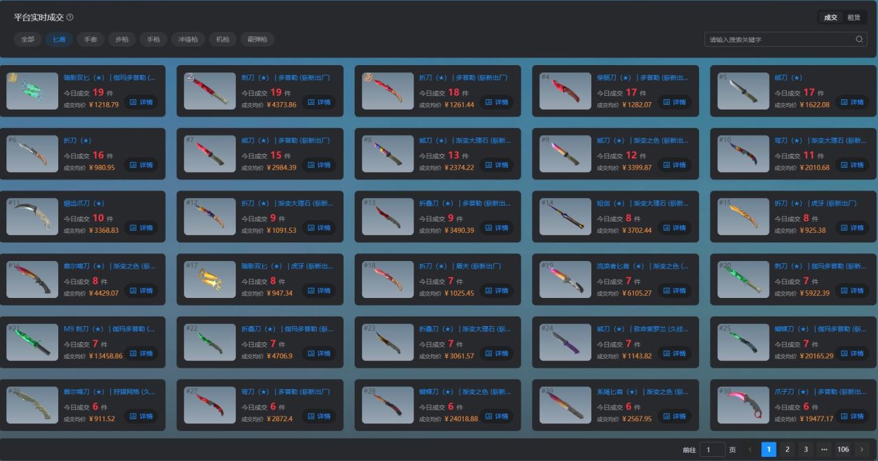 全盘指数下滑不到百分之1、市场起伏稳定、无须担心末日谣言;在线人数上升、市场活跃度较强、成交量开始放缓,部分饰品开始出现上下分歧