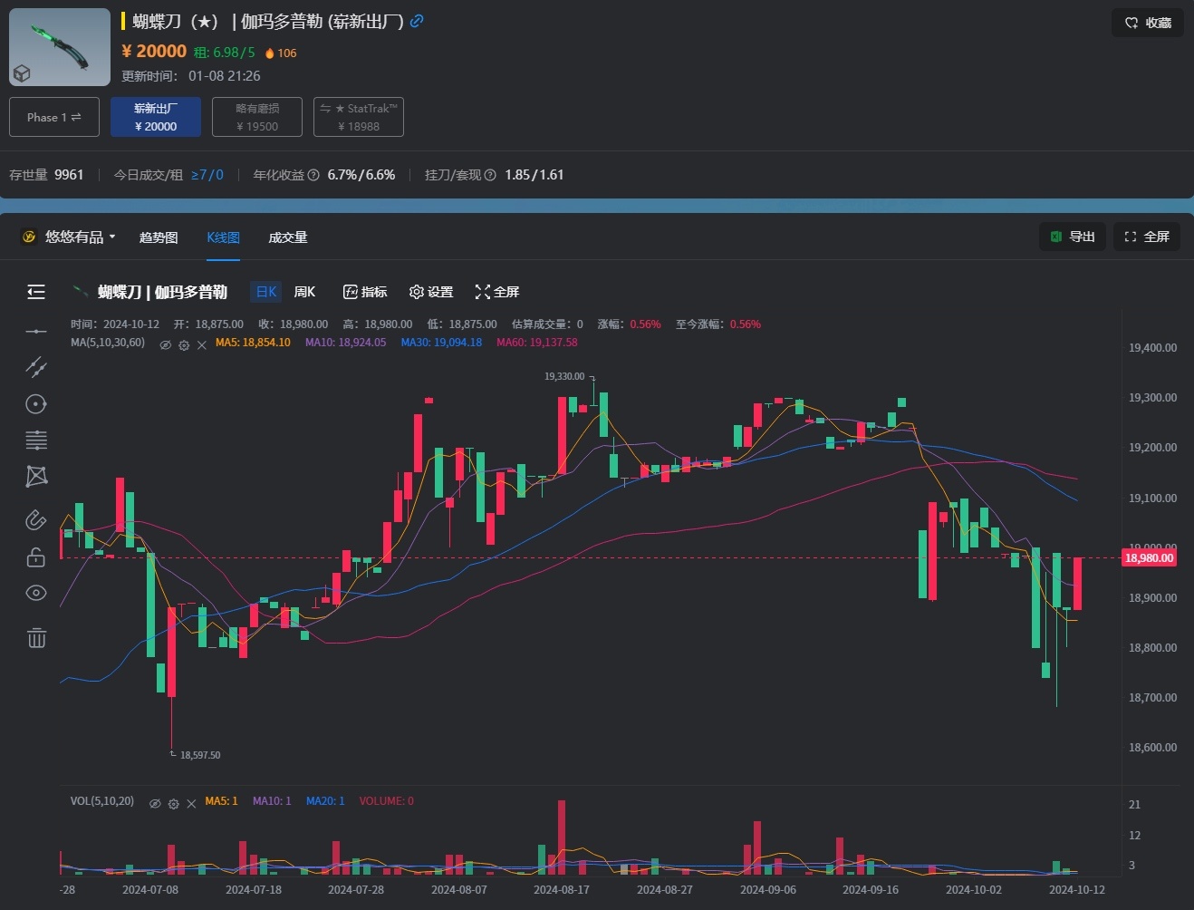 预测未来趋势:前几日成交量放大,未来下跌行情还在继续,不过短期震荡下跌波动较小。自用玩家可在等几日小跌时候进场预计在18500左右。