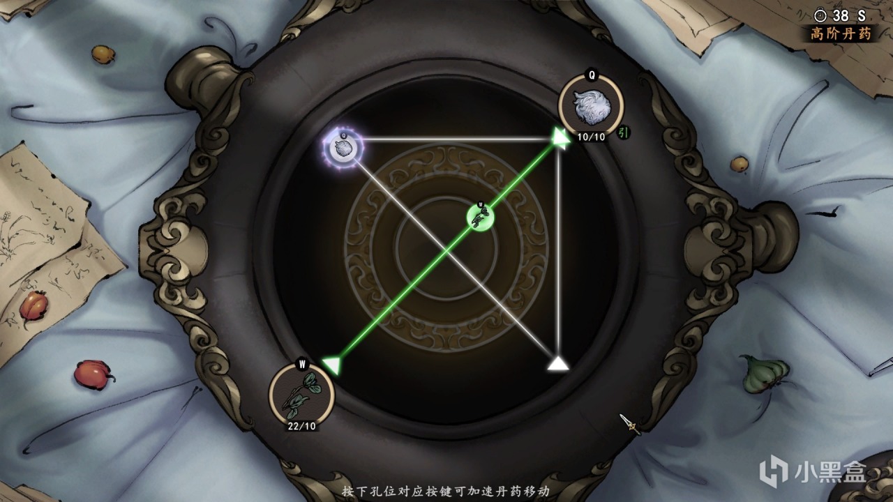 既然是修仙,那肯定就繞不開煉丹,集合天材地寶,經過不斷的融合,進行幾天幾夜的真火淬鍊,招來天雷,然後,成丹!!當然遊戲用了更有意思的煉丹方式,讓幾味藥材沿着不同路徑擺動,只有當藥材之間相遇時(什麼經典數學題),才能融合成丹藥。在煉製丹藥期間我們可以按q或者w加速藥材移動,使他們更快相遇。