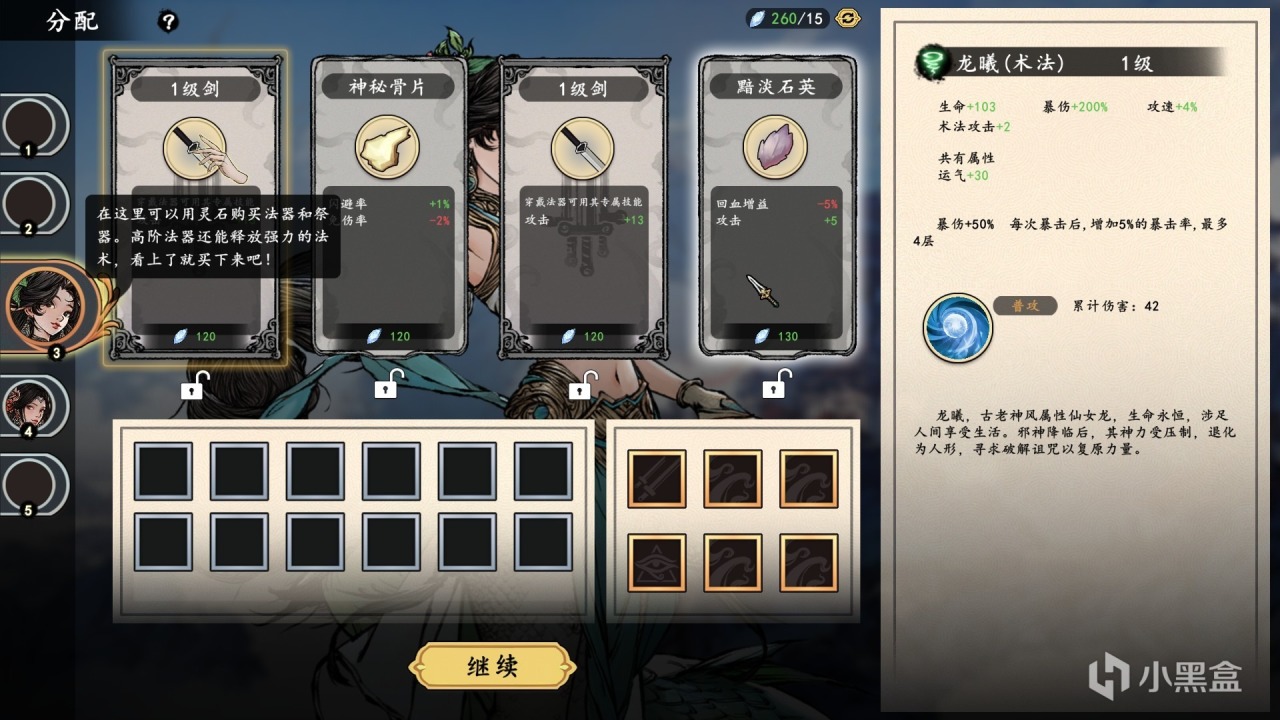 在副本中,我們會進行一波又一波的刷怪過程,每一個關卡結束之後,我們都可以選擇獲得一樣增益,因爲我比較怕死,所以就全點了生命加成。越到後面戰鬥越難,所以我們也要搖人,到後面我們最多可以上陣五人。商店也會賣許多裝備和技能,合理的運用和購買就是我們致勝的關鍵,不然你可能沒見到最後的boss就已經寄了。
