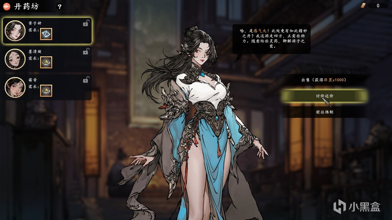 煉製好的丹藥有品質高低,高品質的給我們的老婆女修留着,或者自己喫了補補。低品質的丹藥我們自然是去丹坊賣掉以獲取非罡。這裏就不得不提遊戲裏另一個有趣的玩法了,我們這裏可以進行討價還價加價賣掉,如果你覺得浪費時間,也可以選擇直接賣掉。