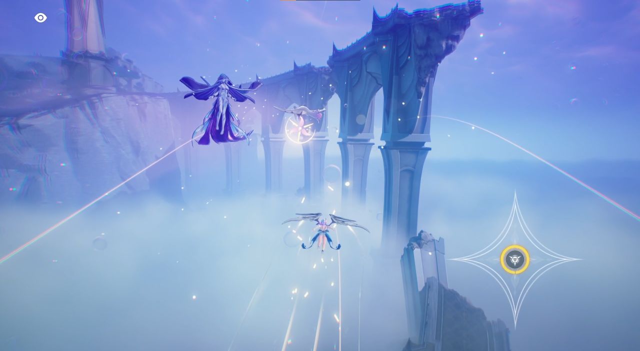 羅蕾萊會揭下她的頭紗,而玩家則用在黎那汐塔習得的翱翔能力與她伴飛在如夢境中的高空。