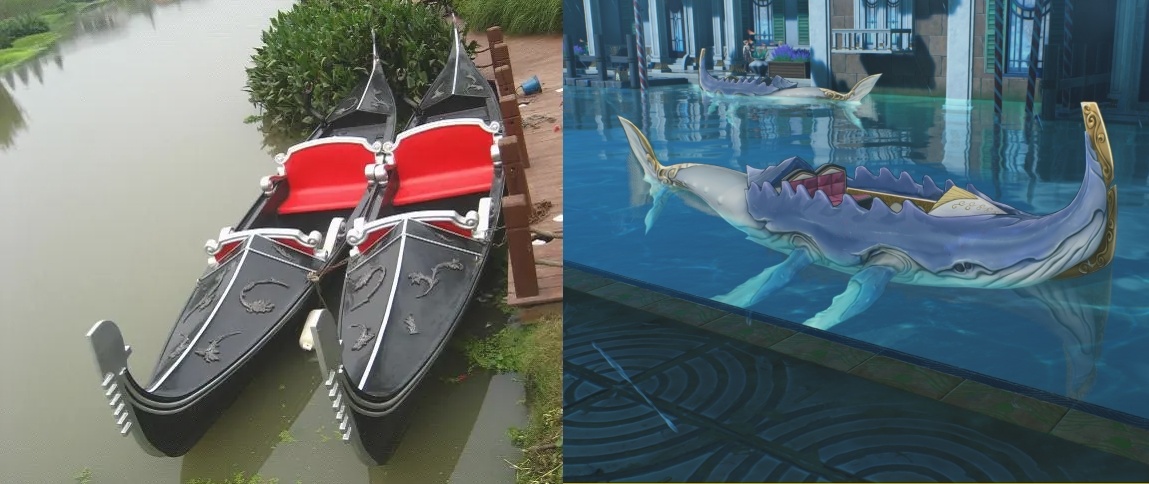 而作爲水城的威尼斯,有着水上交通工具貢多拉,庫洛也將其做到了遊戲裏,同名並且聲骸的外形保留了現實中的“貢多拉”的許多特點