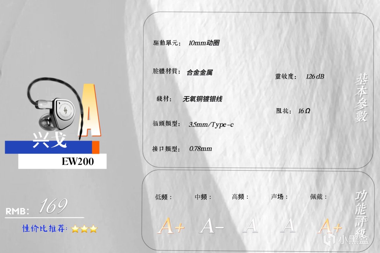 興戈EW200:169rmb||綜合評級:A||性價比:★★★