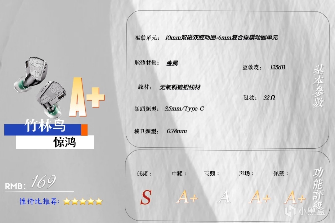 竹林鳥 驚鴻:169rmb||綜合評級:A+||性價比:★★★★★