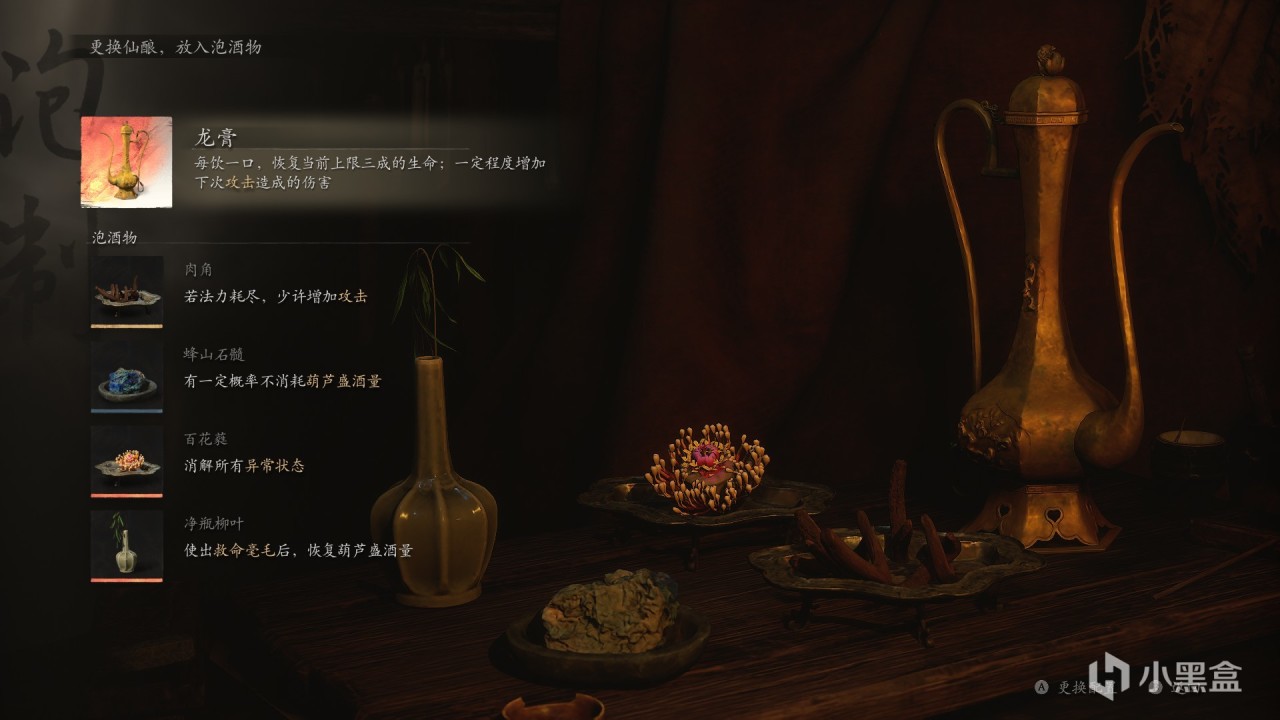 這個打法主要用的是牛魔套裝+混鐵棍,不斷疊加免傷,然後葫蘆帶青田葫蘆+乾和燒,泡酒物選擇梭羅瓊芽,直接每次喝酒以後都是很硬,直接一直懟着BOSS幹就行,我個人建議帶上禁字訣,會更猛!