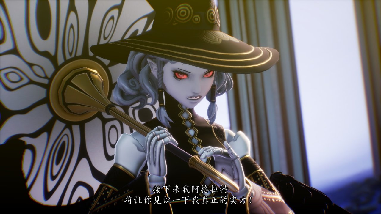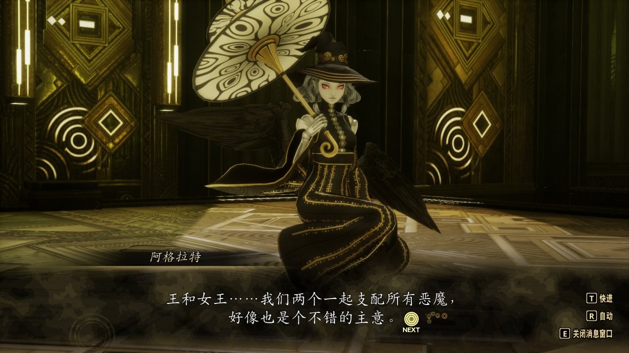 朱脣微啓,淺淺的笑容裏帶着一絲不屑,雪白骨頸在黑色絲服遮掩下,愈發襯托出她肌膚的勝雪,眼眸深邃如潭,閃爍着幽黑色的火芒,彷彿能看透世間一切虛妄。阿格拉特是一個外表冷漠堅強內心細膩好勝的魔女,魔女會在承認你的強大實力前永不停歇地向你發起挑戰,用實力與魅力通過她的層層考驗,消磨頓挫她厚重的傲慢鋒銳,抽絲剝繭間撫摸挑逗惡魔女王外在下細膩嫩柔的心芽,阿格拉特也會壓低帽檐,用洋傘遮蓋自己表情,忸怩間依偎,大膽邀約你成爲女王的王。