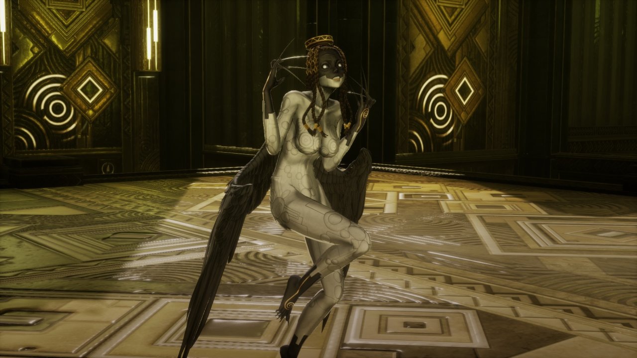 黃金波浪的長髮肆意傾瀉在肩頭,輕盈湧動間每一根髮絲都閃耀着迷人的光澤,彷彿由無數星辰碎片編織而成,在昏暗的燈光下,她悄然環繞在你的身邊。拿瑪在女魔中最爲性感、善於誘惑,據說會在夢裏和男人結合並利用他們的慾望創造出無數惡靈,傳聞其美貌曾誘惑天使,並與其結合剩下惡魔之王。她是歡愉混亂的女子,在人間收穫激情誘發禍患