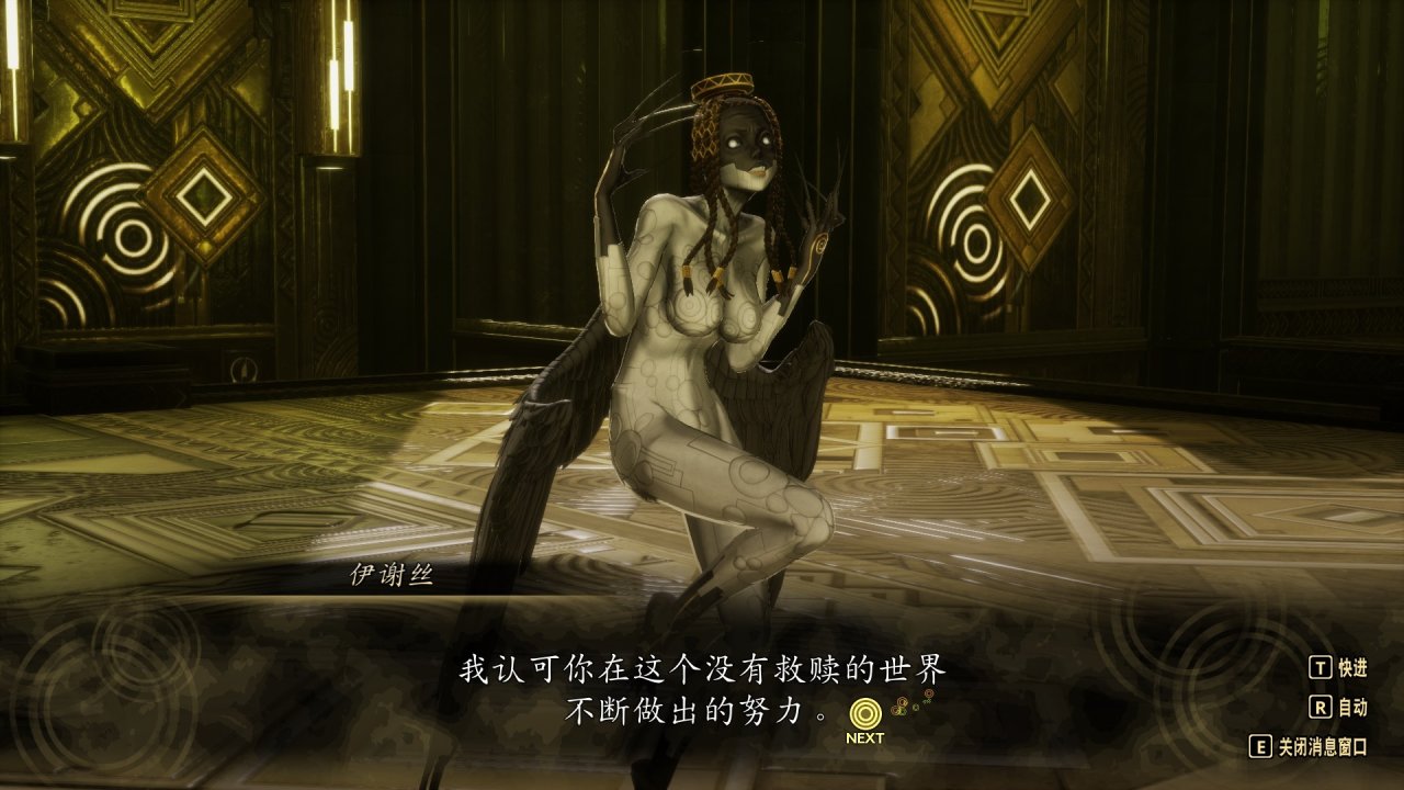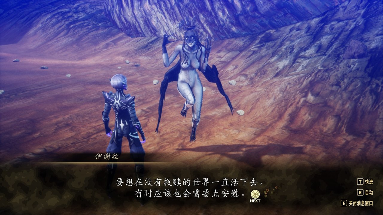 伊謝絲還是做好準備向你傾訴內心的情緒,表達對你在這個無法救贖的世界中不斷做出努力的認可。她無法繞過心結對你告白,但依舊希望與你相伴,伊謝絲告訴你,她依舊懷疑救贖的存在,希望在與你長情相伴的時光中看到心中的答案。