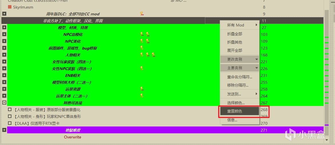 然後就是會出現覆蓋的情況,比如博主推薦的Mod主力整合裏面已經打過了,我們點擊前面的確認方框後,會發現另一個地方也有一個Mod跟着亮了,這表示出現了覆蓋的情況。