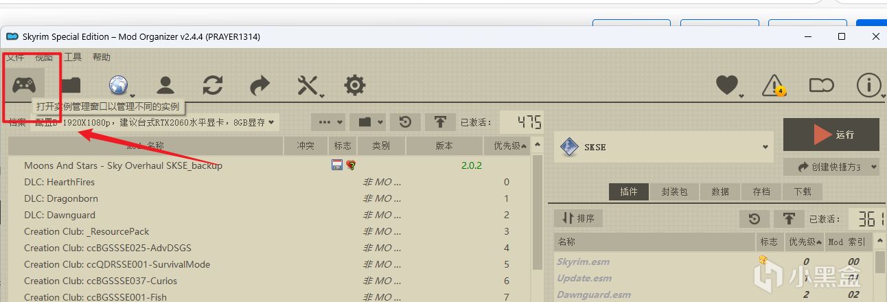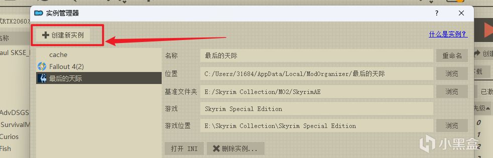 這裏我主要再演示一下如果已經用mo2打過mod了,怎麼創建新實例