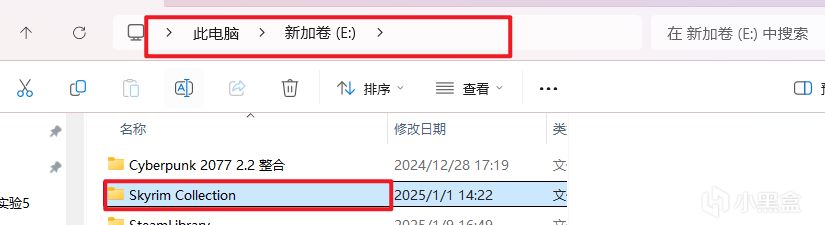我們選中第一個“MO2”文件夾,右鍵選擇剪切,然後將其粘貼到我們剛剛創建的“Skyrim Collection"文件中