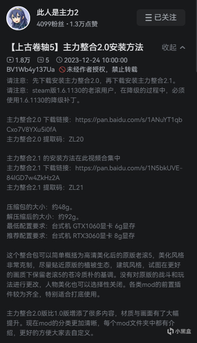 思考了一下,還是把主力整合的安裝過程以及在結合可能是非常非常細緻的2024上古卷軸5萌新入門指南(上)這篇文章時的一些注意事項給大家分享一下,看收藏的人比較多,算是做一些補充,謝謝你們。