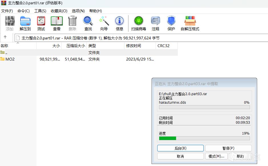 在降級完成後,我們開始解壓先前下好的主力整合壓縮包,分段式的壓縮包我們只需要解壓序號爲part01的壓縮包,就可以全部解壓,最好使用WINRAR解壓!不然有可能會文件損壞!⚠️需要注意的是,解壓到的文件夾名字不要帶有中文!解壓之前建議關閉防火牆⚠️