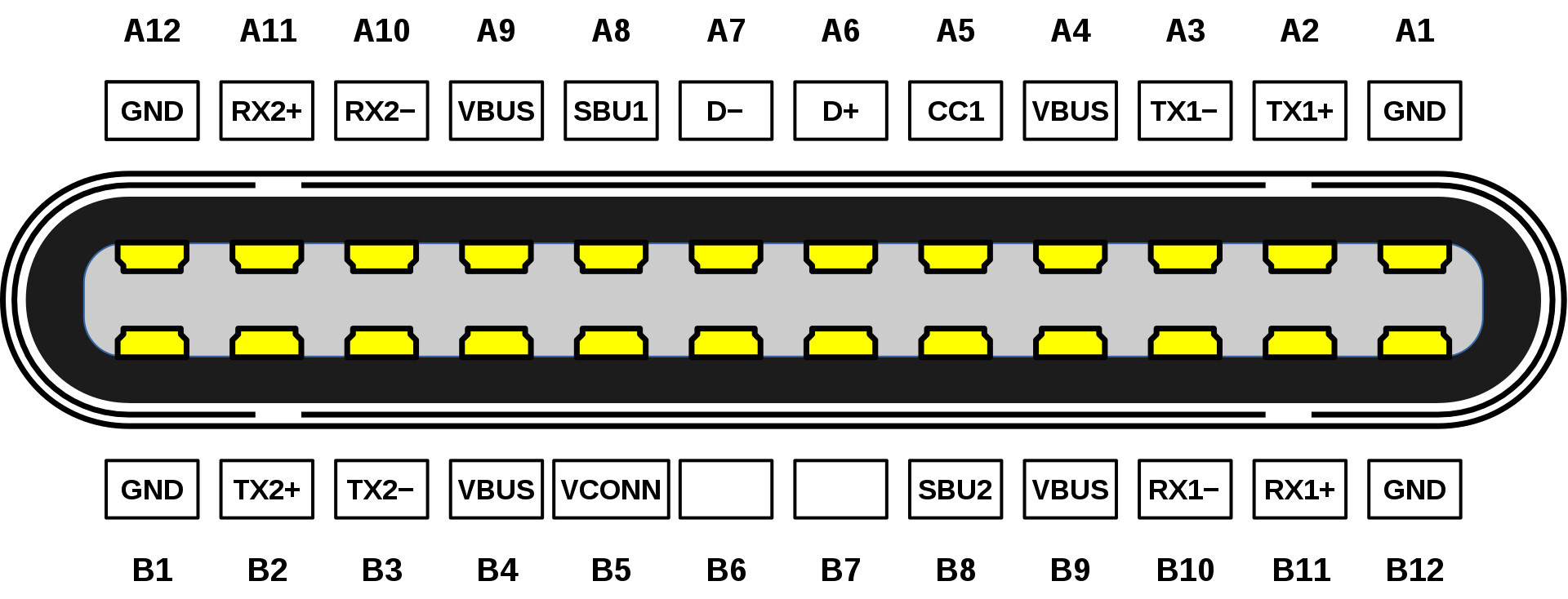 新的Type-C接口拥有24个触点,其中4个用于输电,出厂最大电流直接拉到了5A。