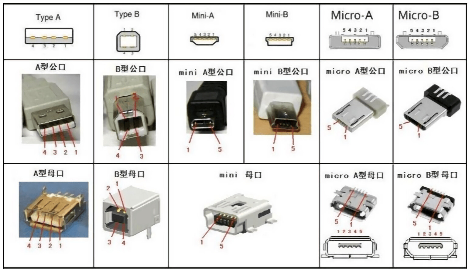如果你回忆起USB2.0时代,那一定就是这种类繁多形状各异的USB接口,虽然长得不太一样,但这些都叫USB2.0。