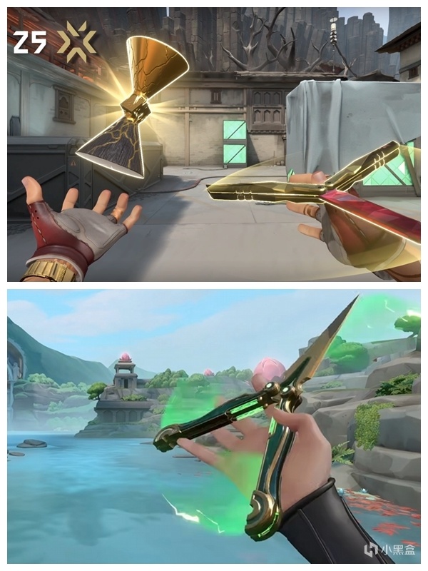 顯卡蝴蝶刀算是這個套裝的重中之重,切刀動作和聲效非常簡約清爽,乾脆利落,打擊感強。檢視時,蝴蝶刀身的炫光色彩會不停變化,絢麗多彩,實實在在的光污染,剛用的時候愛不釋手,時間長了可能會膩。總之,豐富的光效搭配清爽的動作讓顯卡蝴蝶刀在外服剛上架時直接封神,歷經歲月沉澱,也仍然不失爲一把優秀的蝴蝶刀。