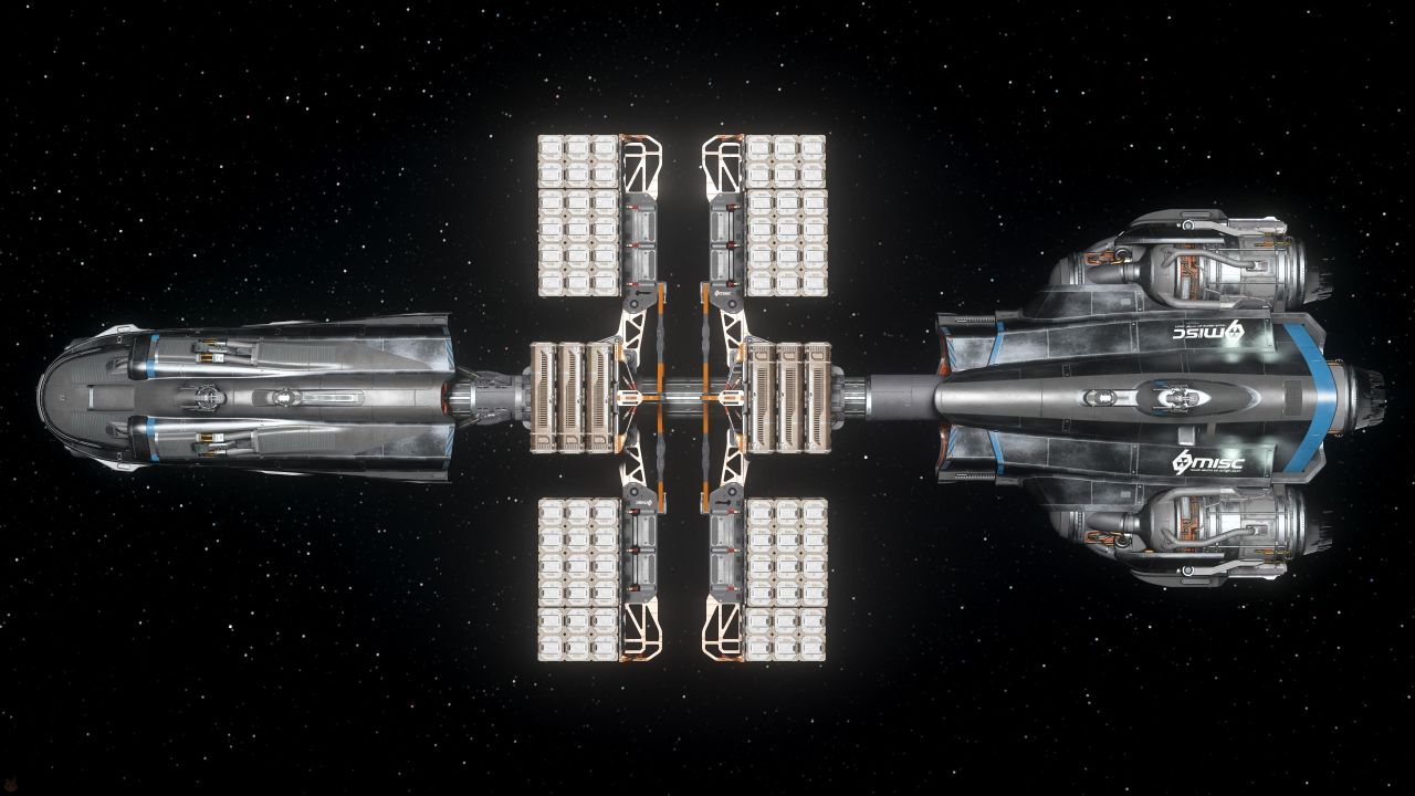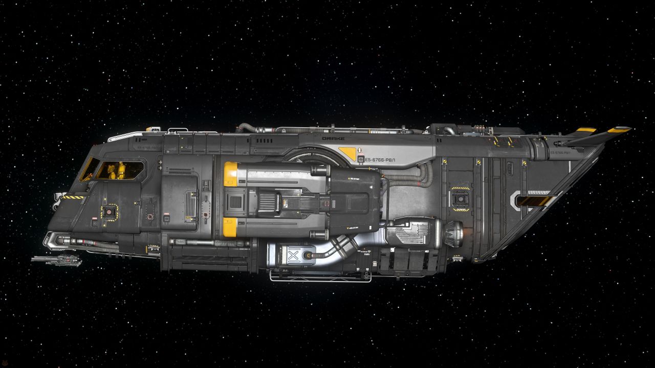 貨系列是《星際公民》裏獨樹一幟的深空貨運飛船,專職空間站對空間站的貿易,配備了可伸縮式的變形貨架,用以外掛更多數量且更大容量的貨箱,只是這船頭輕腳重的造型,和貨架展開收縮的場景是不是有點……