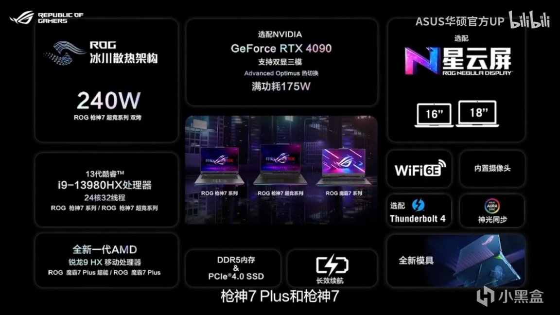 枪神7超竞版与枪神7 Plus超竞版,可选配175W满功耗版RTX 4080 12GB与RTX 4090 16GB显卡。屏幕方面,枪神7、枪神7超竞版搭载16英寸ROG星云屏,枪神7 Plus及枪神7 Plus超竞版则采用18英寸星云屏,支持500尼特超高亮度,16:10黄金屏占比+240Hz高刷。