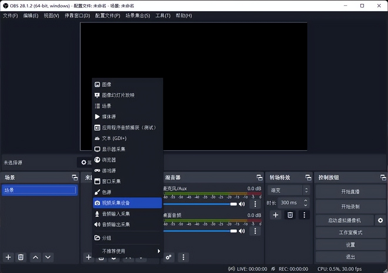 Elgato HD60S +采集卡能够免驱使用,连接电脑后会被系统识别为摄像头,通过系统中自带相机来进行预览和录像等操作,OBS软件中添加视频采集设备。