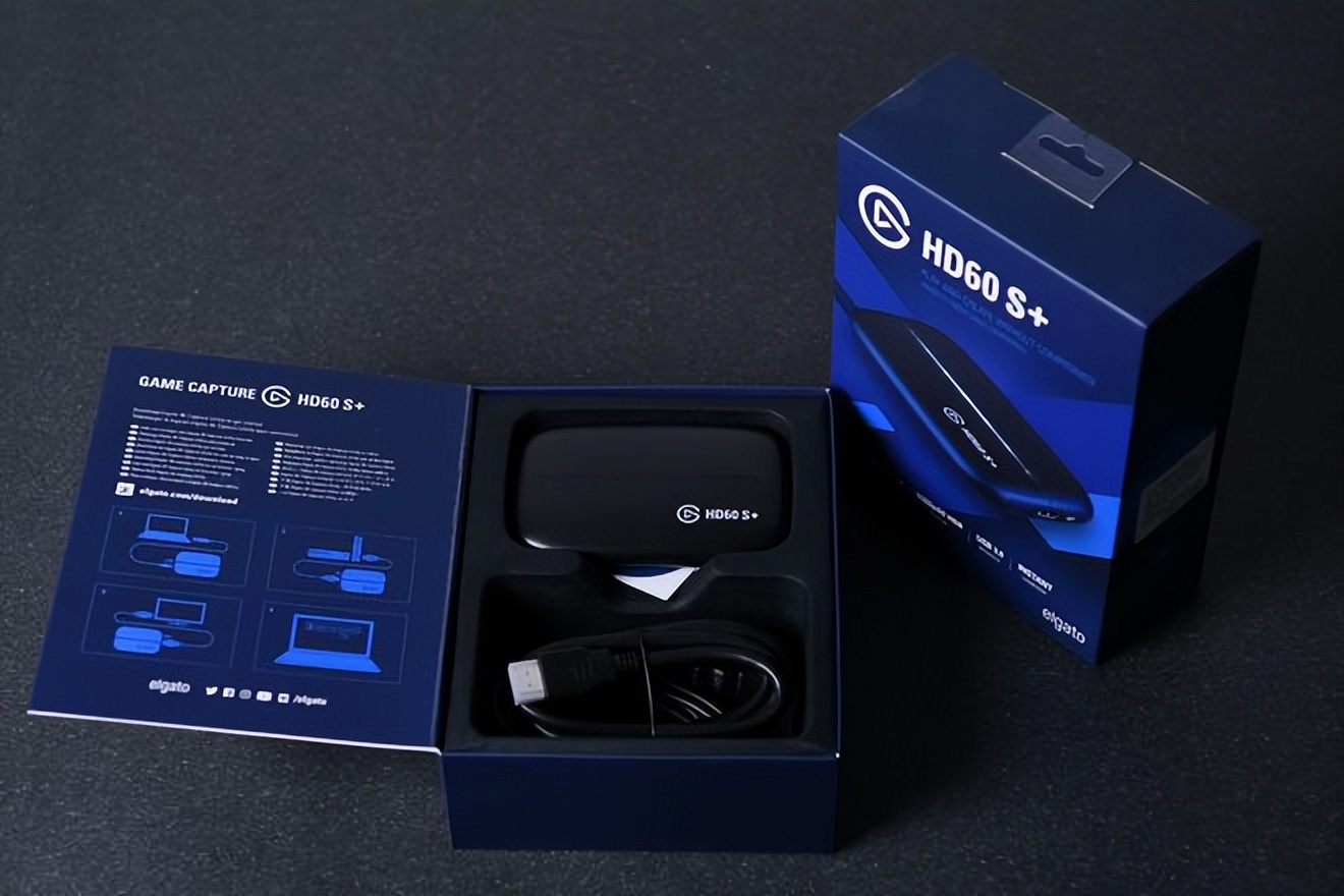 如之前评测过的Wave:3麦克风一样,Elgato HD60S +采集卡使用家族式的蓝色包装。包装的明显位置表明核心卖点:4K60Hz HDR环出、1080P HDR视频采集、USB3.0高速接口以及低延迟技术。