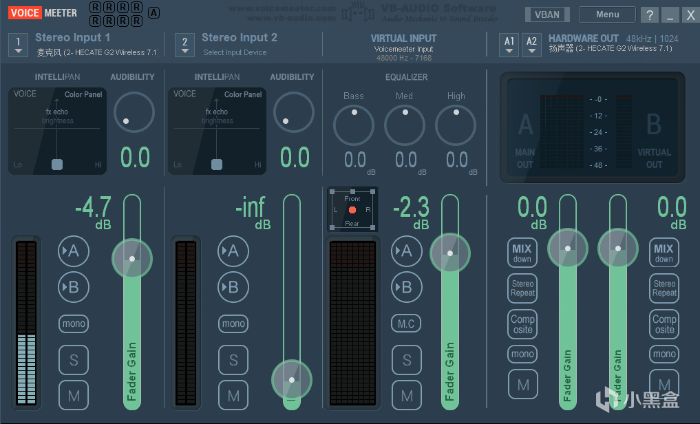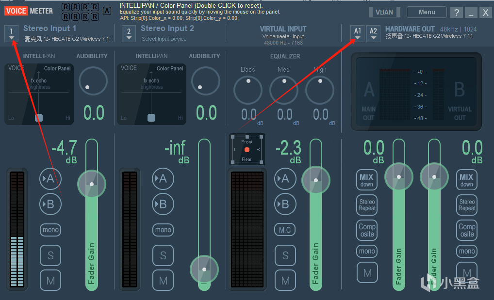 (注意这里,如果不想让别人和自己听到自己的原声就把第一栏的AB关掉,第三栏同理)