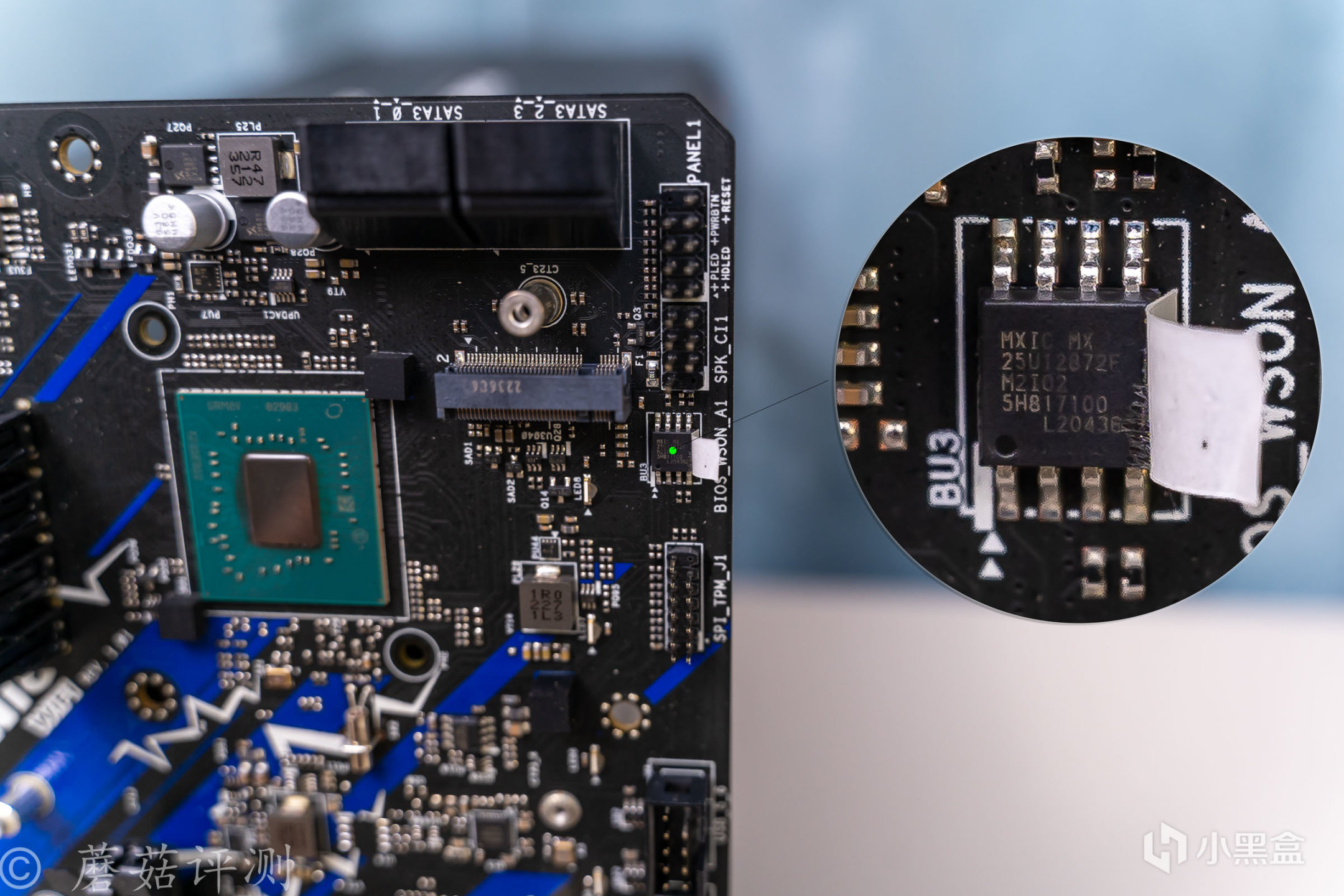 ▼主板的BIOS存储芯片,在主板的右下角,容量在16MB左右,基本够用了。