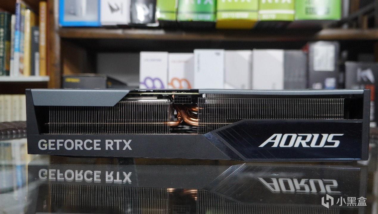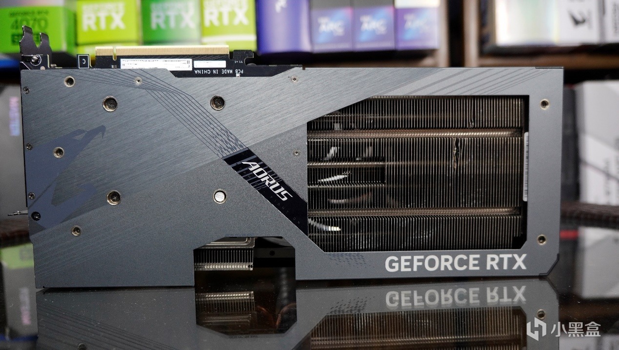 技嘉超级雕RTX 4070 Ti SUPER 16GB内部采用了9根复合式热管以及均热板直触GPU的设计,搭配进气格栅来提升散热效率。显卡背面采用了全金属背板设计,金属背板设计有AORUS LOGO就,同时在右侧采用大面积开孔设计来进一步提升显卡散热性能。