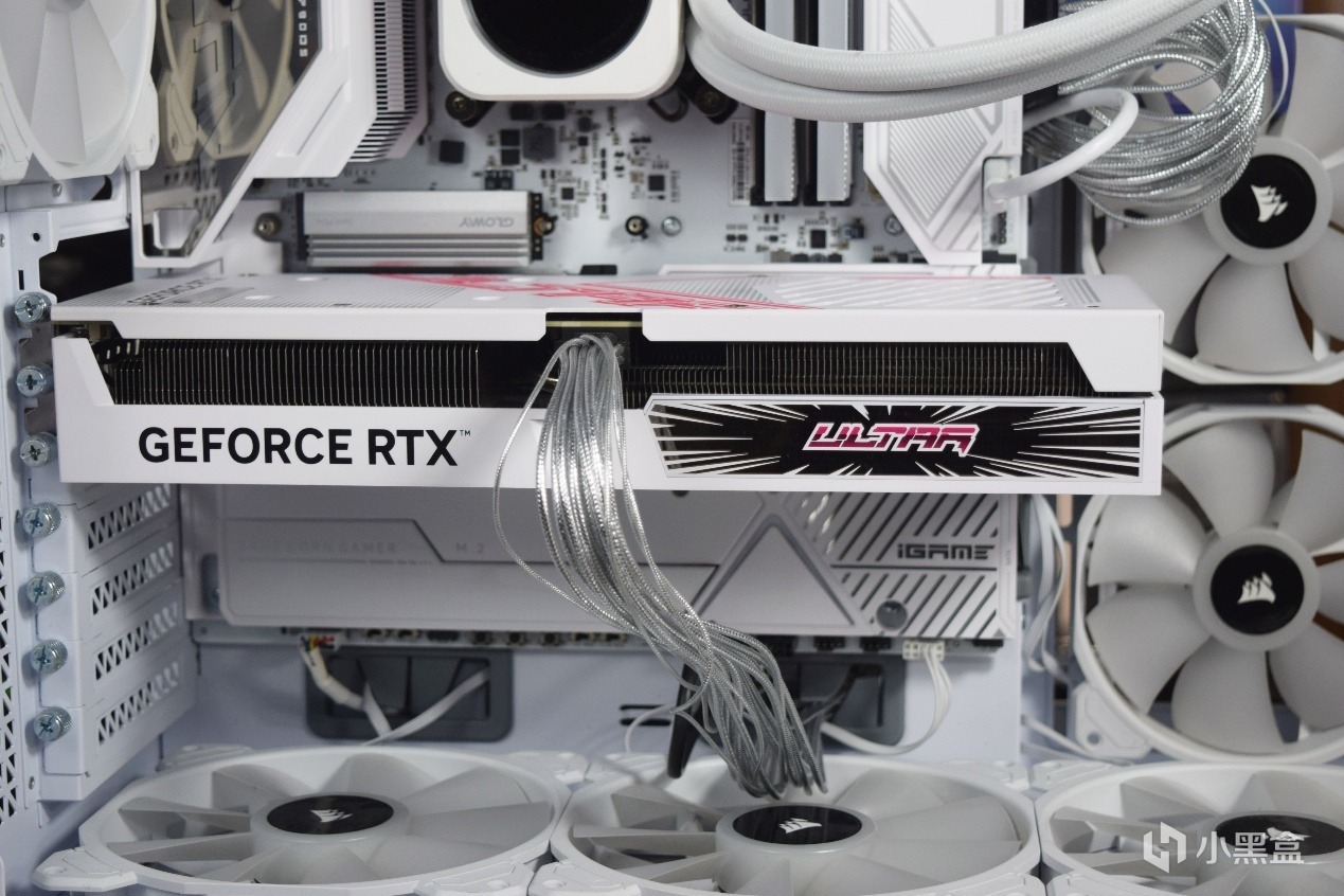内部散热设计方面,iGame RTX 4070 SUPER Ultra W OC 12GB内部采用了4根6mm粗纯铜镀镍热管,通过“回流焊”工艺使热管与大面积散热鳍片贯穿起来,可以大幅提升散热效果。