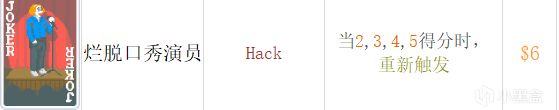 標籤前期比較強,中後期隨着玩家可以在戰鬥中疊小丑倍數(如以下小丑牌)
