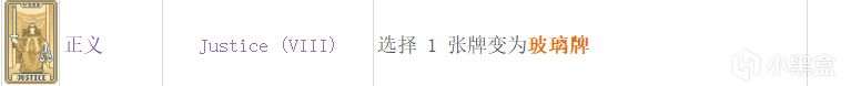 (變玻璃牌)堪稱是boss關救星,所以在開始新的一個底注時一定要養成看boss的好習慣,如果發現牌組被針對請早早在小盲注前的商店就做準備,牌組喫同花的就買一買變色的塔羅,喫順子就買力量, 喫胡蘆,四條,五條的就準備死神。千萬別前期圖爽早早的用掉然後再買!